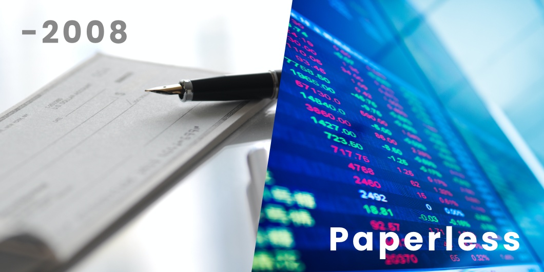 デジタル証券では、2008年までに存在した「株券」や「手形」「小切手」のような紙の証書ではなく、コンピュータ上に書き込んだデータを証書として権利を表示しています。